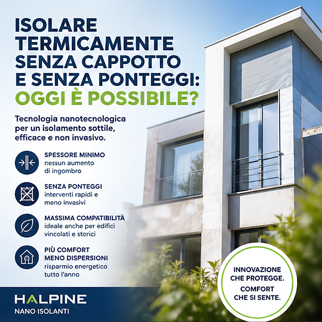 Con Halpine Nano Isolante Facciate è possibile intervenire all’esterno senza pannelli e senza impalcature invasive.