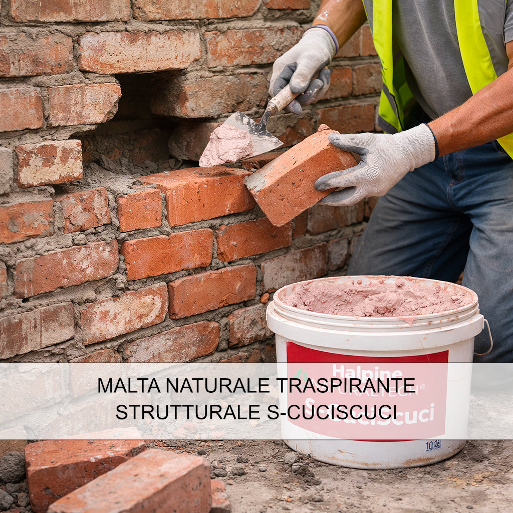 Malta naturale traspirante strutturale tipo M10 Halpine NaturalTech© S-CuciScuci per murature faccia vista, allettamento e stuccature di pregio.